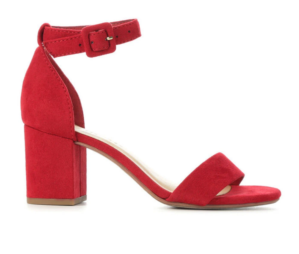 Reach for CAKE when you want to celebrate. These silver shimmering sandals are perfect for any party or dressy occasion. CAKE has an adjustable strap at the ankle, a cushioned insole, and a covered block heel that is approximately 2.5 inches.
