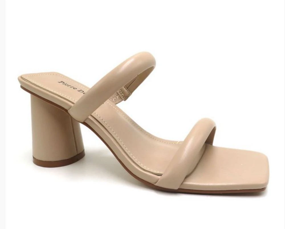 Style this heel up or down for almost any occasion. Features a double strap upper and faux leather material. A square toe a thick heel makes for easy walking. Heel height 2.5 inches. Pair these with a long flowy dress and a cute bag.