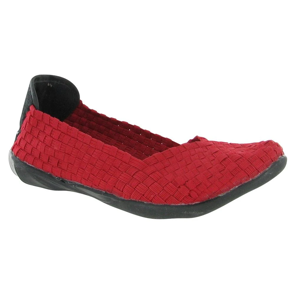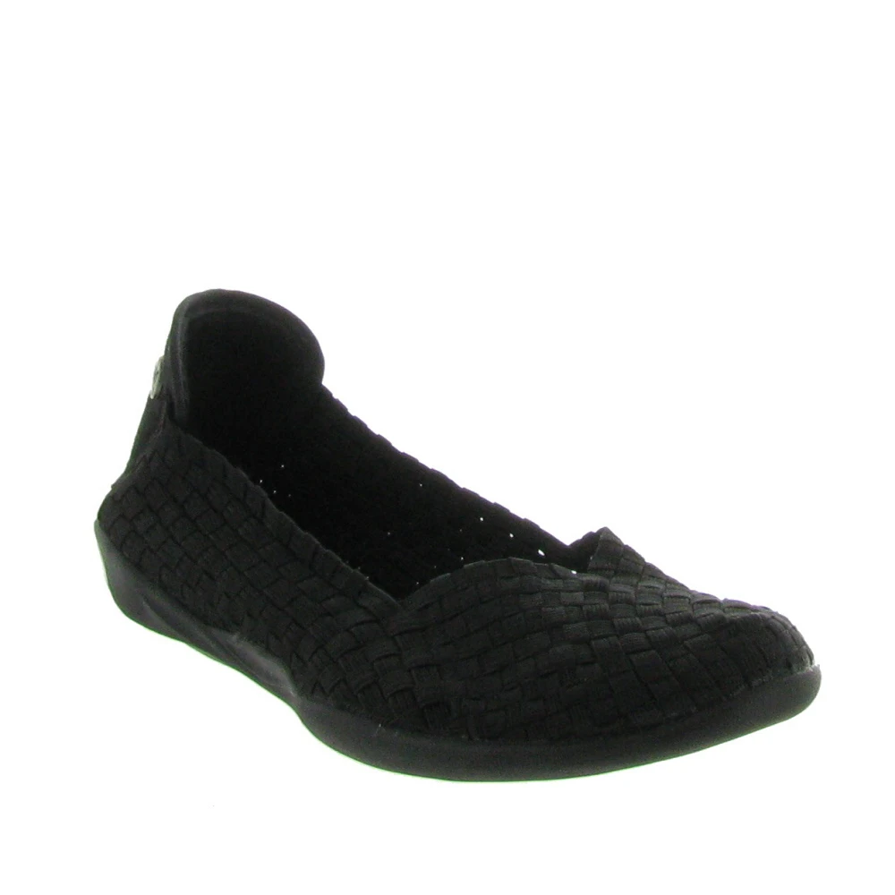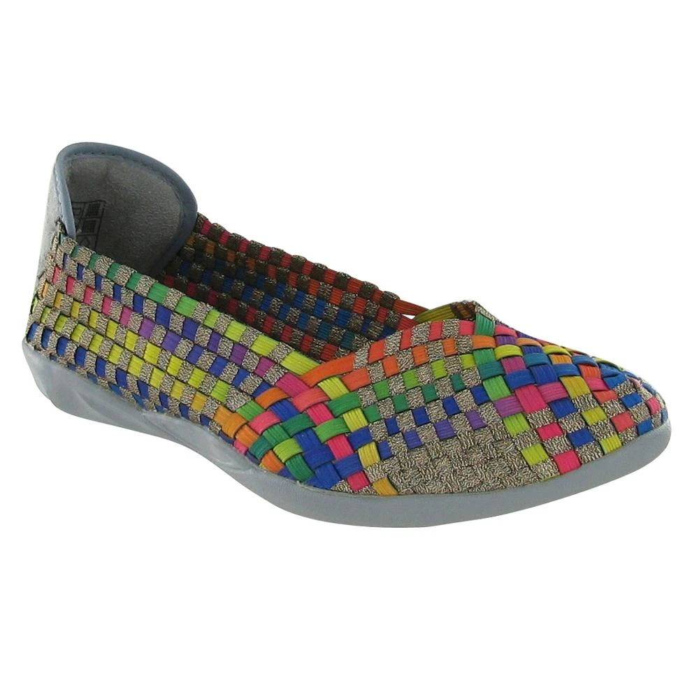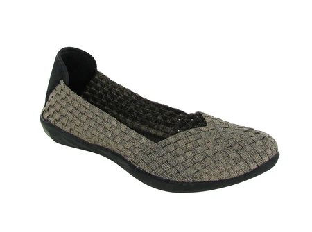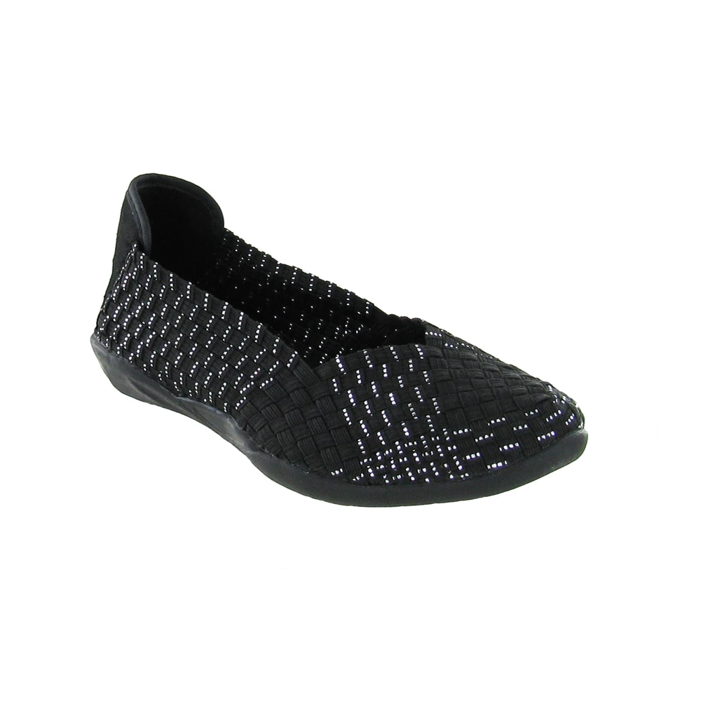 The `Catwalk` is an elasticized casual flat that is incredibly light weight. It has a soft upper and a cushioned insole. These shoes are woven and handmade, so there might be slight variations in the fit of each shoe. Please note that some of the models contain metallic material.