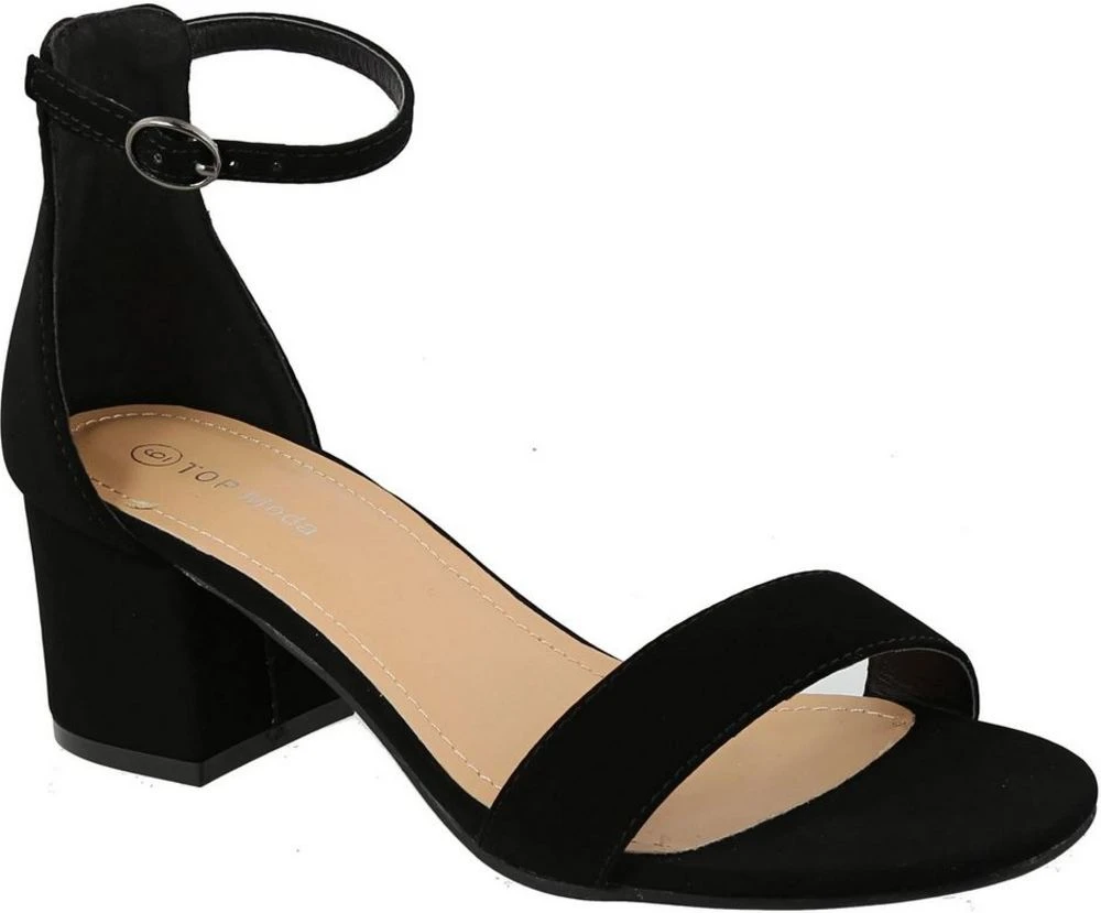 A simple, strappy heel perfect for a any dressy occasion. Features an open toe style and a block heel measuring 2.2 inches. Adjustable ankle strap and nubuck upper.