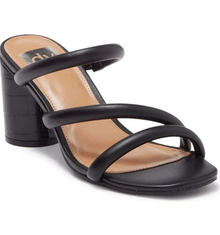 Strappy and classy, the Myla heel features a bold block heel and a modern look. Slender strap across upper of foot and an easy slip-on design. Square-toe and manmade upper/sole. 2-3/4` heel. Dress them down with jeans or dress them up with a dress.