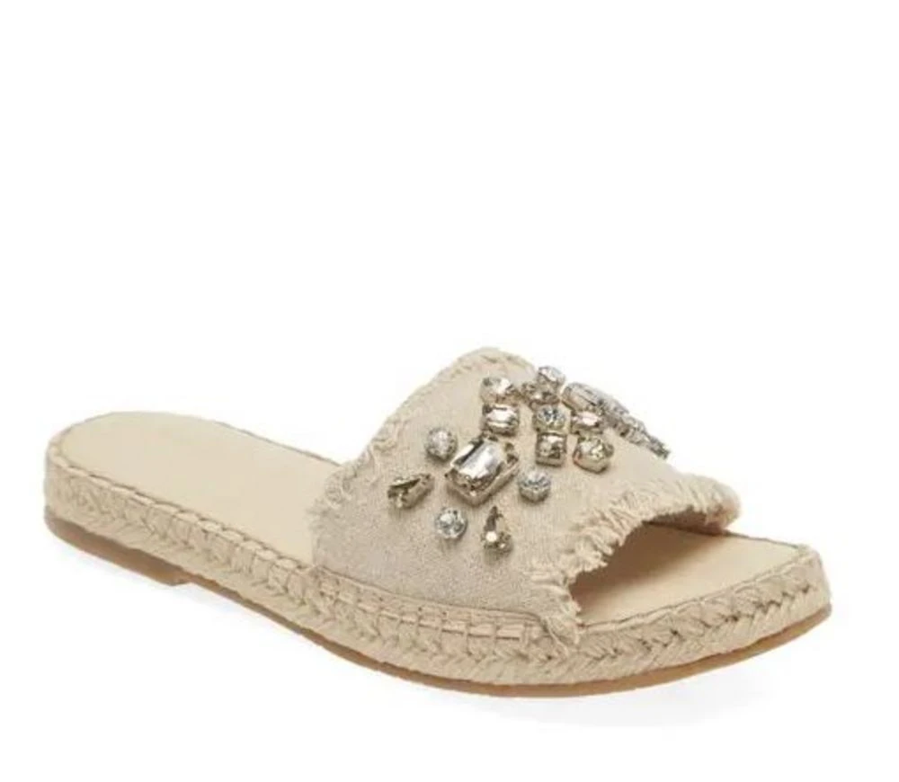 The Ellis is a cute, beach-ready slip on for dinners by the ocean. Features a natural linen upper and leather lining. A padded footbed for all day comfort and a 3/4 inch platform heel.