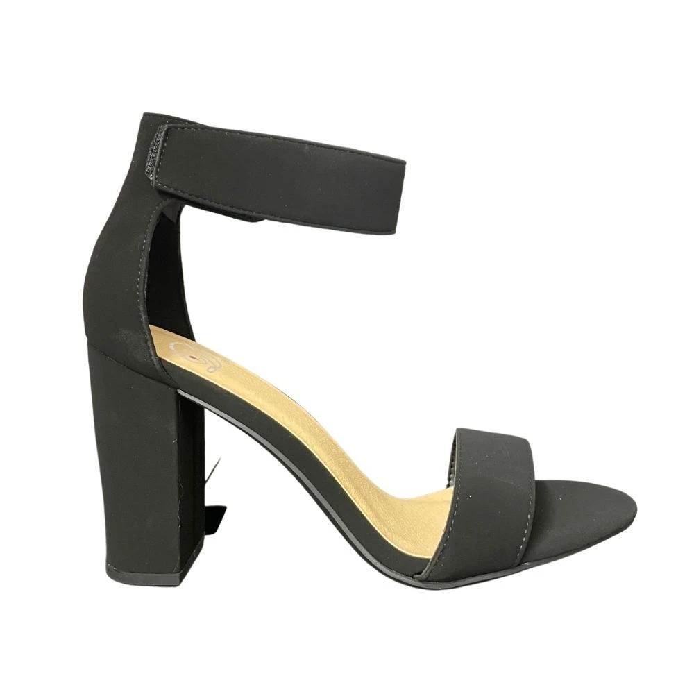 This strappy, open toe heel pairs perfectly with any dressy outfit. Features a chunky heel and easy velcro strap with no buckles necessary. Heel High 3.25 Inch with 0.15 Inch Platform.