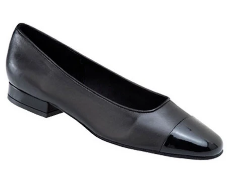 Simple, sleek, and comfortable. A true Marmi classic, the versatile VANELi FC-313 flat skimmer with a capped toe is a must have for almost any occasion. The low profile 1 inch heel takes you from casual work days to fun-filled evenings without missing a step. The VANELi FC-313 shoe features a leather sole, padded footbed, and is unlined for comfort and fit. This flat shoe is fashioned in Black nappa leather with a coordinating Black nappa leather capped toe. The VANELi FC-313 is available in a variety of solid and two-tone soft Italian Nappa leathers.