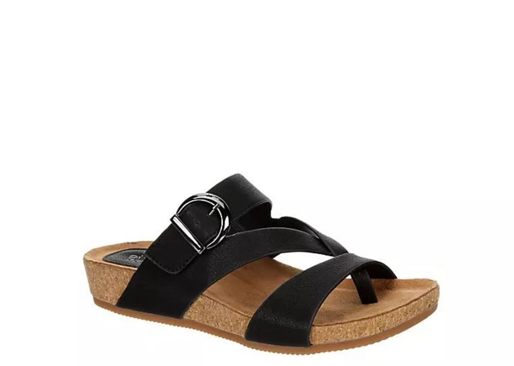 Warm weather calls for evening strolls in the Gladis sandal. Features an adjustable strap with stretch gore panel that ensures a secure fit. Cushioned footbed and cork midsole keep your feet comfortable all day long. A simple heel height of 1 inch gives a slight boost, without making it hard to walk.