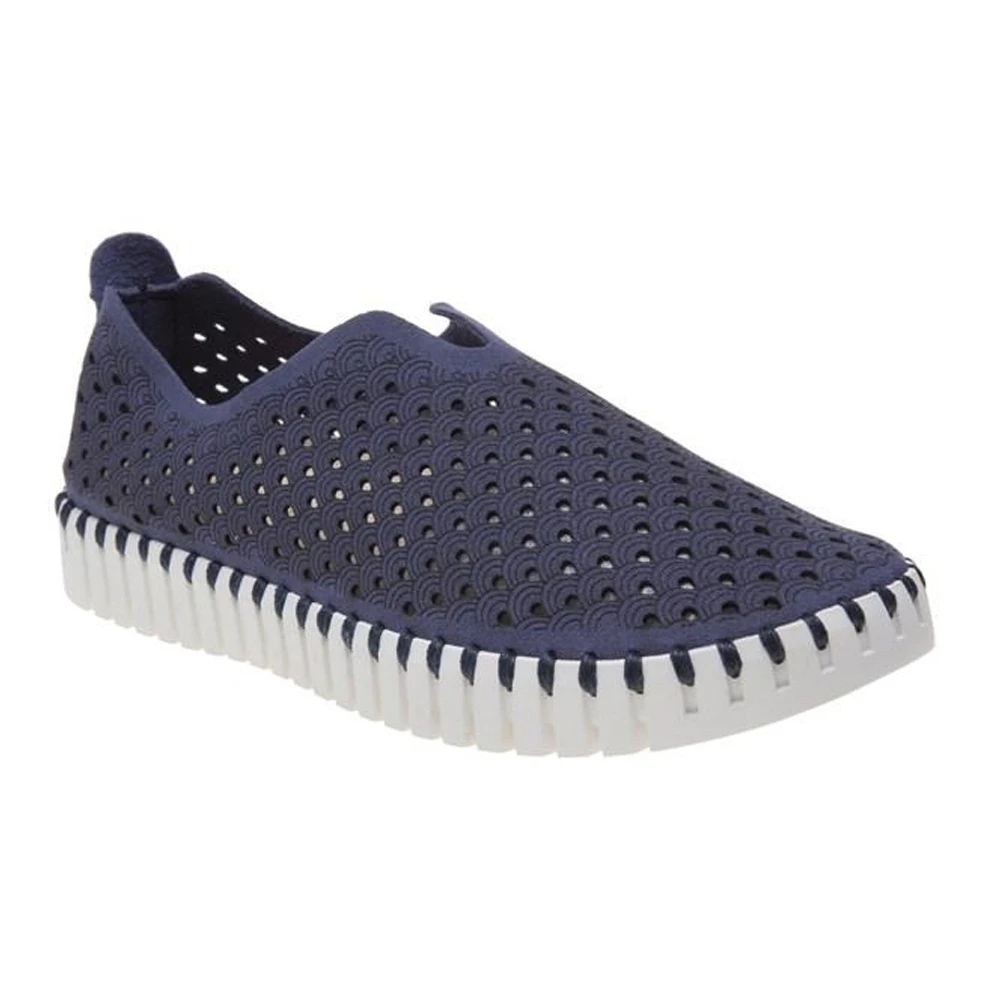 A scalloped shoe with embossed frames over teardrop perforations. The insole is padded for extra comfort and the outersole is made of a flexible rubber. We recommend buying a 1/2 size up, as the shoe runs small.