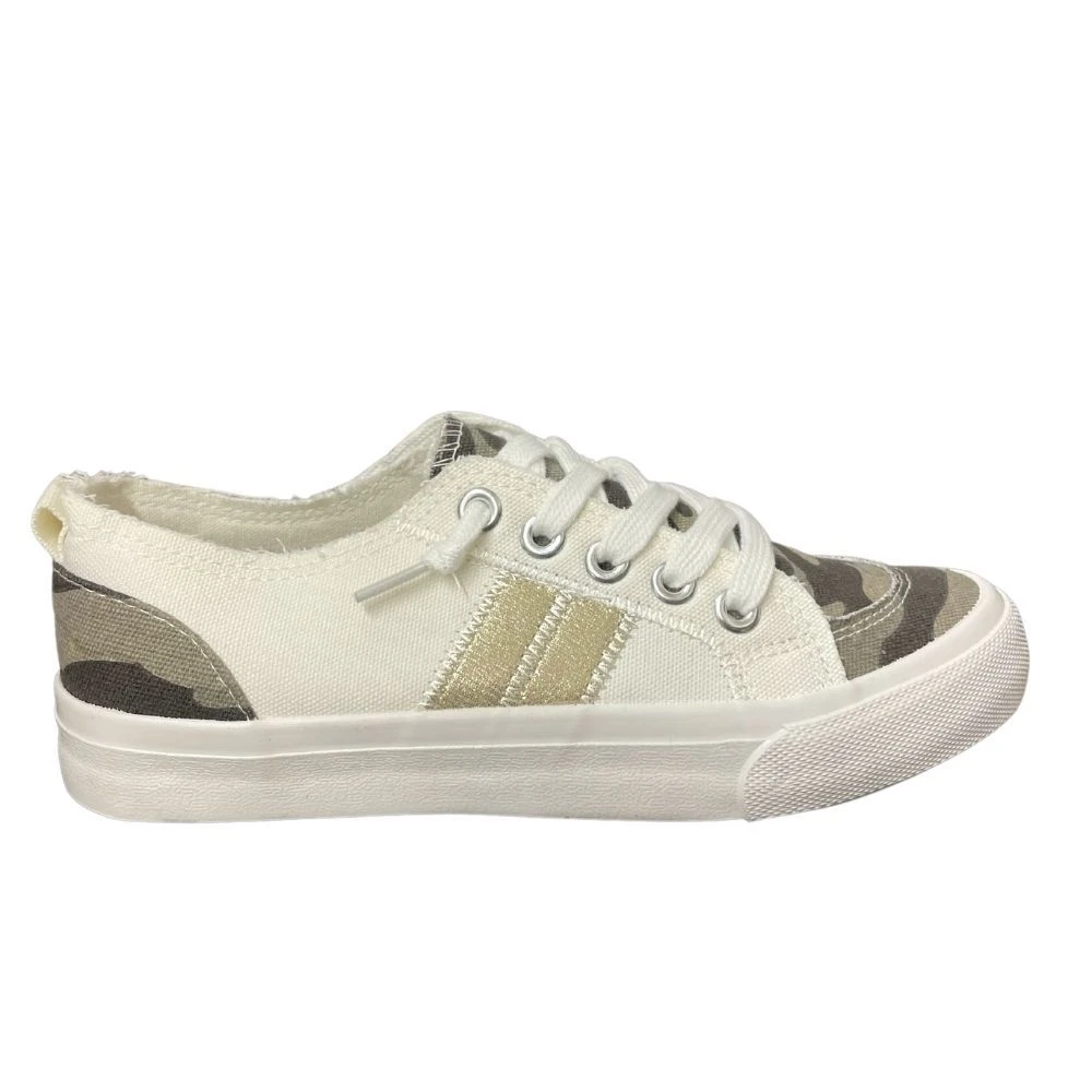 A new take on the casual lace-up sneaker. These camo sneakers are easy to throw on and lace up. Features a round toe and comfort technology. A 1 inch flat heel provides a little boost and looks great with jeans or shorts.