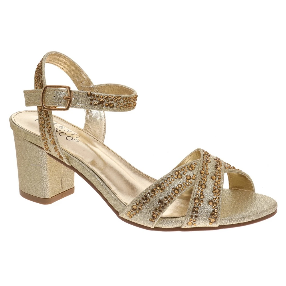 Make a statement in these rhinestone, sparkle heels. Features a crisscross upper and an adjustable ankle strap. A 2.3 inch heel makes for easy walking all day or night long and a padded footbed will assure your feet stay comfortable.