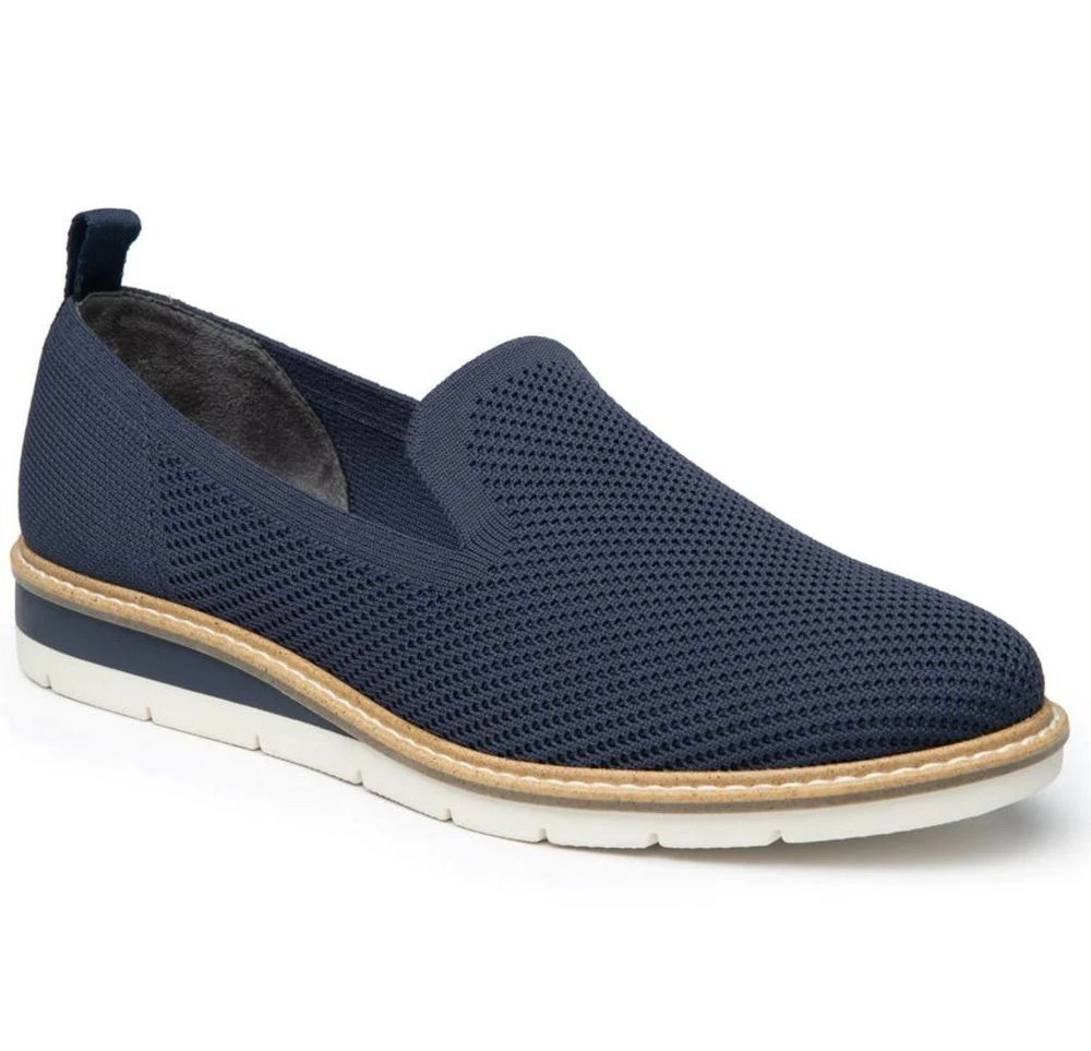A closed toe slip on for warm weather. Features a heel of 0.5 inches and a rubber treaded sole. Memory foam footbed and perforated mesh upper.