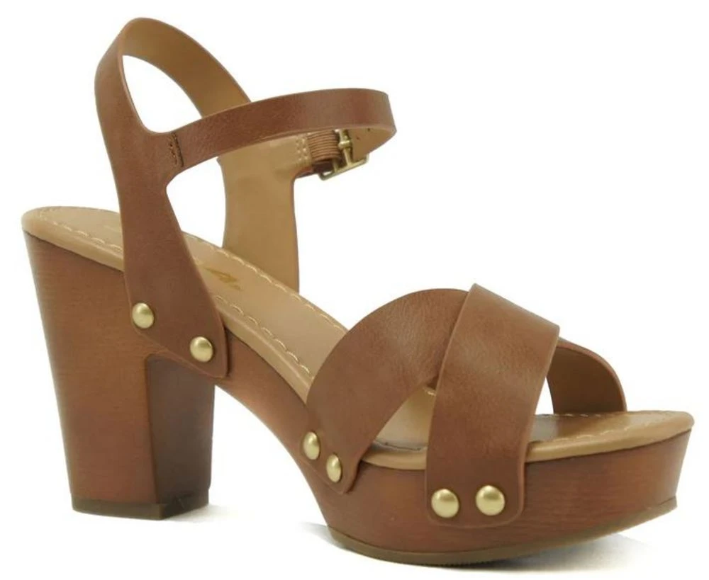 This stylish, chunky heel features an open toe design and adjustable ankle strap. Criss cross style straps on upper and made of faux leather. 3.5 inch heel height that gives the perfect lift paired with a dress.