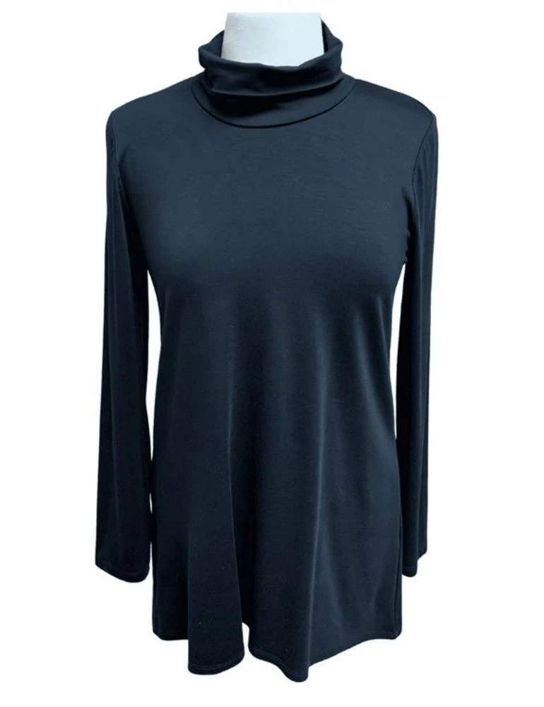 This versatile mock top is a fall and winter staple. Features long sleeves and and a long cut that conceals any areas you don`t want to show. Pair with jeans or leggings and layer with a jacket. 92% Rayon of Bamboo, 8% Spandex.