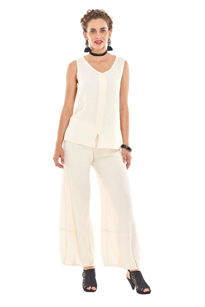 The Henri sleeveless top features a v-neckline and a-line cut on our signature cotton gauze fabric.