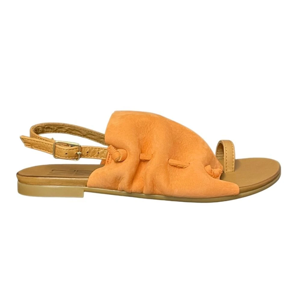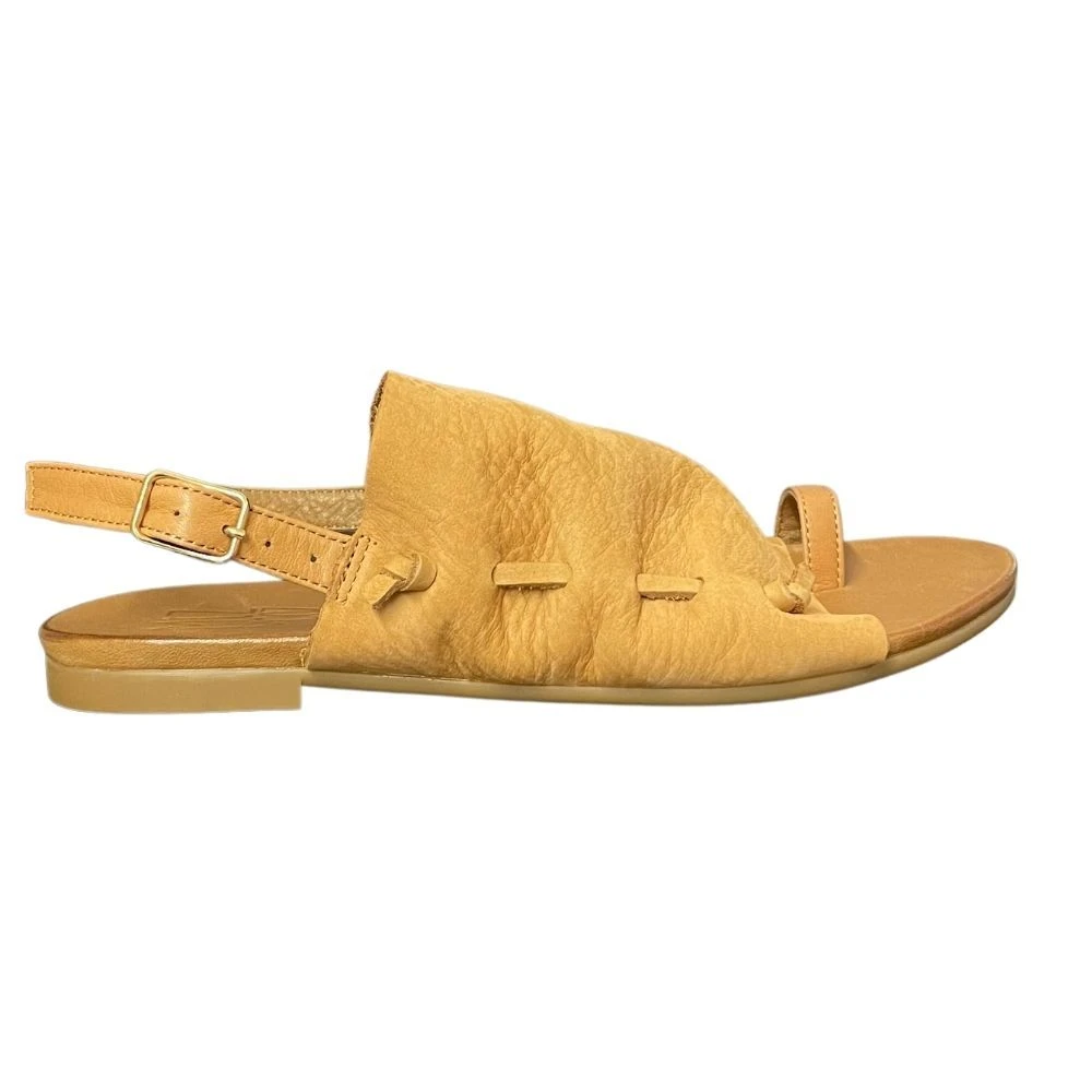 Add a little boho energy to your outfit in the Rian sandal. Features rouched leather and a big toe strap. An ankle strap ensures a secure fit and a buckle closure allows this sandal to be adjusted perfectly. Leather upper and 0.75` platform. Perfect for everyday wear.