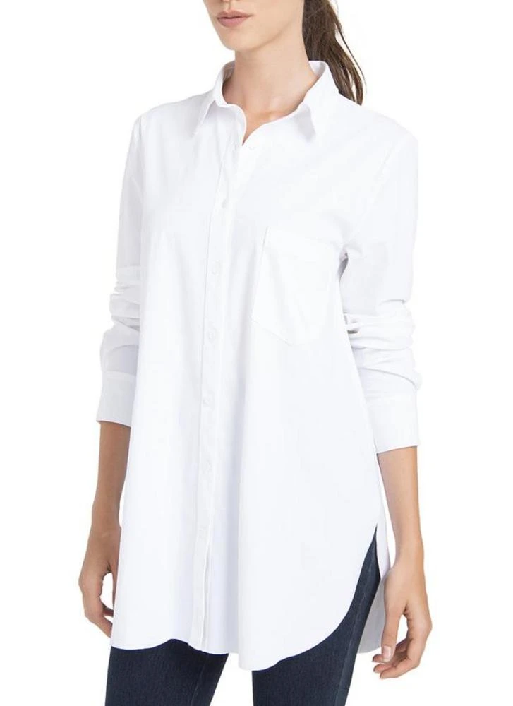 Ideal for travel or marathon meetings, our micro-fiber Schiffer Button Down is a wardrobe essential that keeps you cool and wrinkle free. With a menswear-inspired back yoke and box pleat, this is the perfect shirt to wear untucked with jeans or add a blazer for a buttoned-up look.