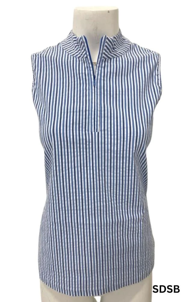 This adorable sleeveless top will keep you cool and comfortable all summer. Features a 3/4 front zipper and slimming fit. Pair with sandals and some white capris.