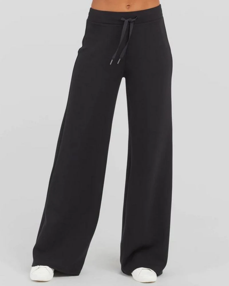 Luxurious and lightweight fabric, these wide leg pants will be your new favorite bottoms. 4-wy stretch and all-day comfort. Front drawstring for the perfect fit. Pair with a comfy top or pullover.