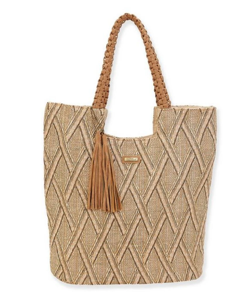 Poly Straw Shoulder Tote | 16.5` x 5.5` x 16`