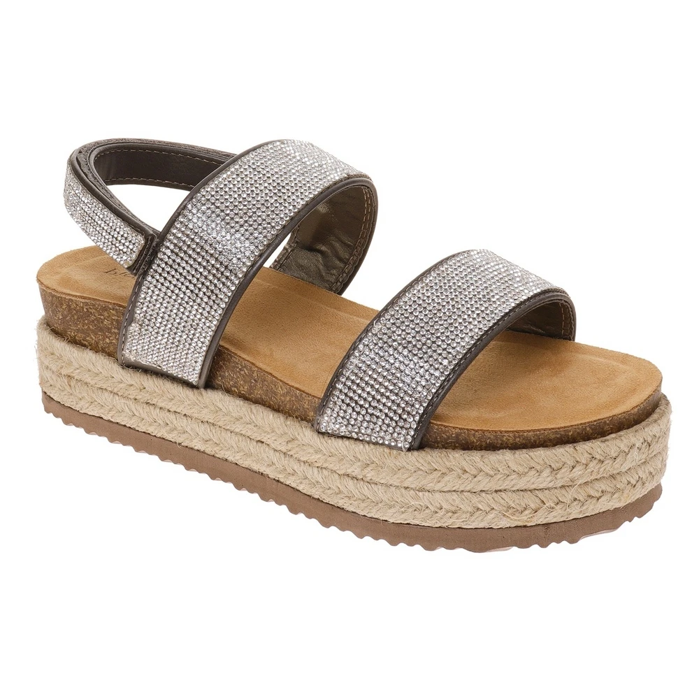 Elegant meets summer in the Vida 2 espadrille sandal. This sparkly shoe features a glitter double strap upper, adjustable velcro ankle strap, and soft footbed.
