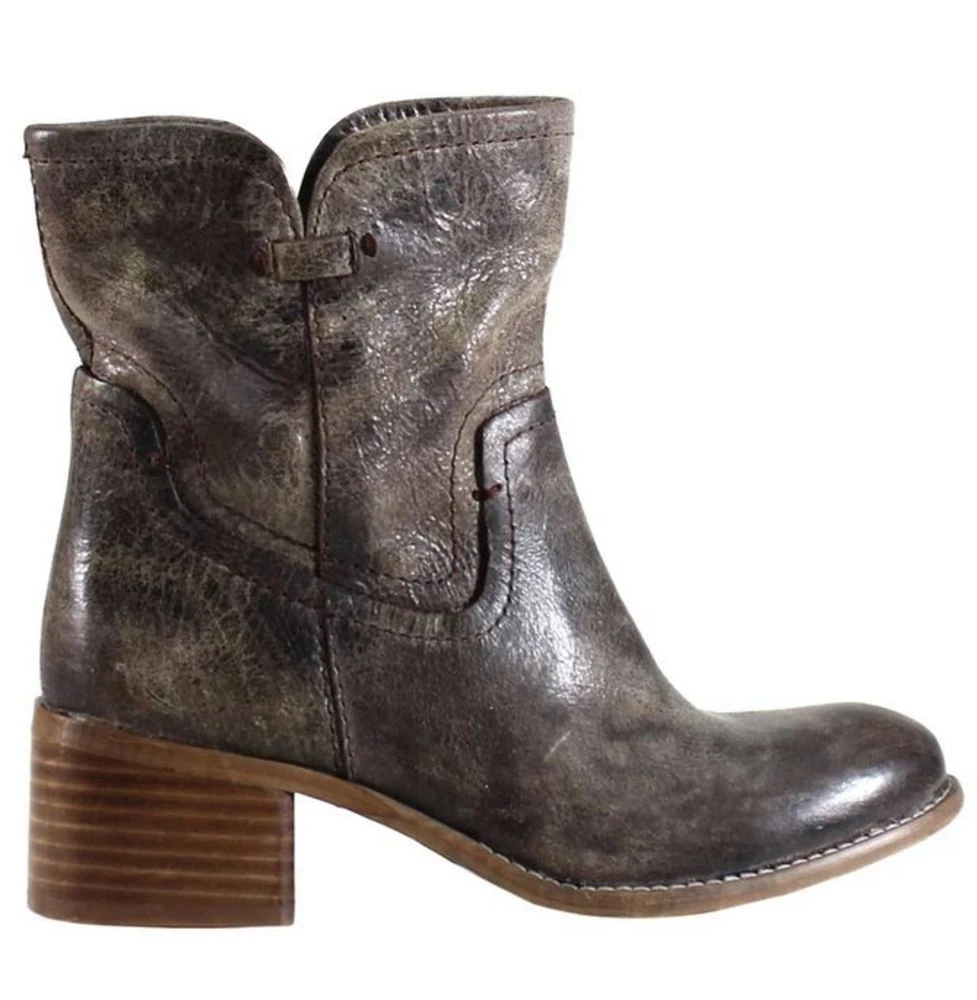 A modern-day boot with a twist. This western-like boot features distressed leather upper and a 2-inch heel. Thick stitching pulls in the western style of this boot and pairs perfectly with jeans.