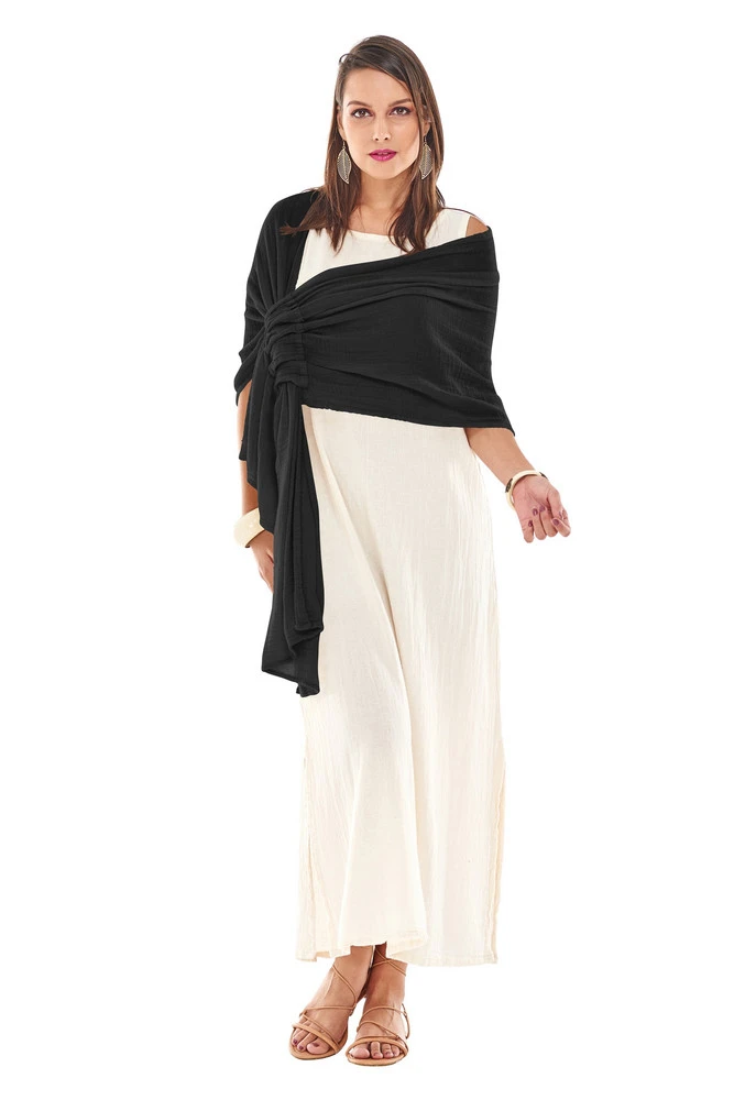 Keep warm in this adjustable cotton gauze shawl. A belt loop allows for it to be adusted to the perfect fit for you. Throw it on over any top. Wdith: 21`