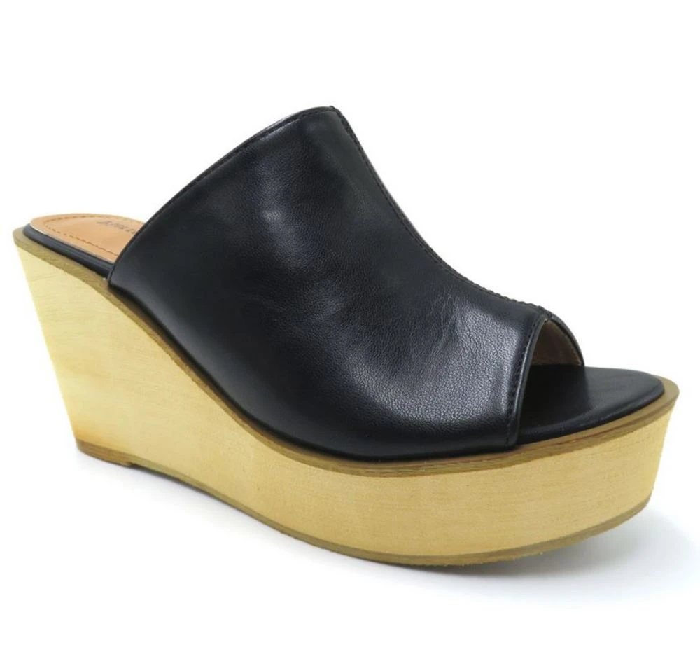 These adorable chunky wedges are the perfect spring/summer shoe. Slip them on and off with ease and walk in comfort all day long. Features a faux leather upper and a light, foam wedge. 3.4 inch heel.