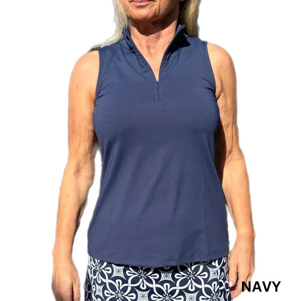 Throw this sleeveless top on to go play a game of tennis on a hot, sunny day. Features a 3/4 zip, collared neckline and UPF50 protection. This fabric also has a cooling effect so you`ll stay cool and dry all day long.